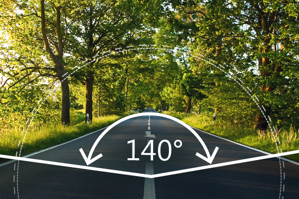 Благодаря углу обзора 140° видеорегистратор захватывают широкий участок дороги впереди автомобиля, включая соседние полосы и обочину. Также MSR300 GPS записывает Full HD-видео с разрешением 1920х1080 и частотой 30 кадров в секунду.